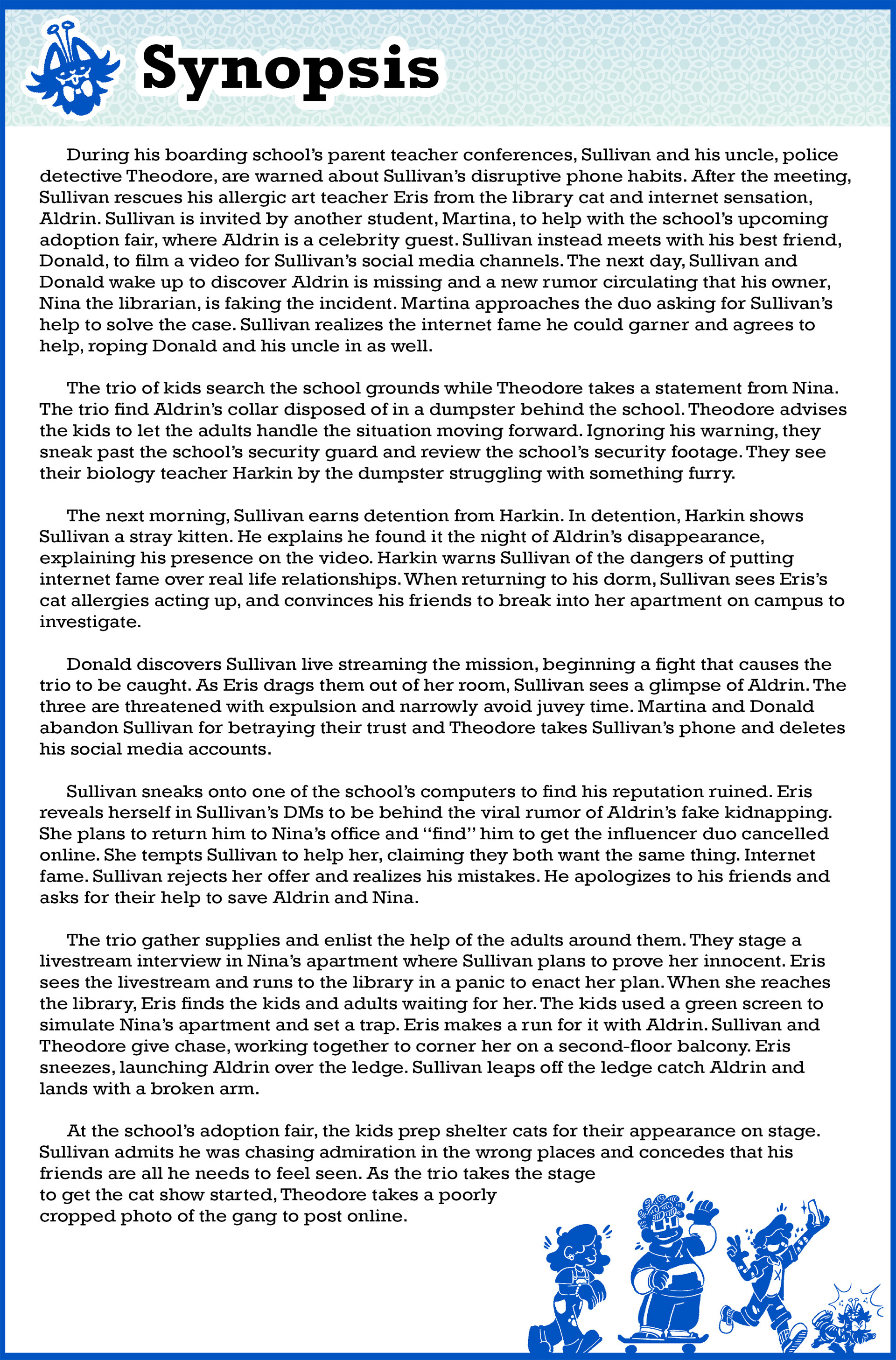 This story follows 13 year old Sullivan Swift as he attempts to become the next viral influencer to hit the internet. When the local internet celebrity, a cat named Aldrin, goes missing, Sullivan and his friends take up the mantle of detective to save the feline and the upcoming adoption fair.